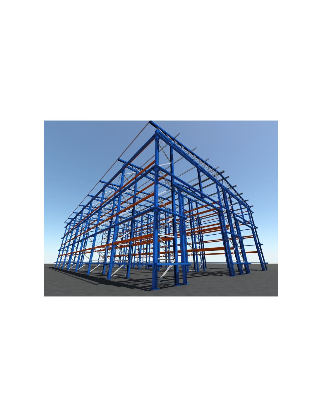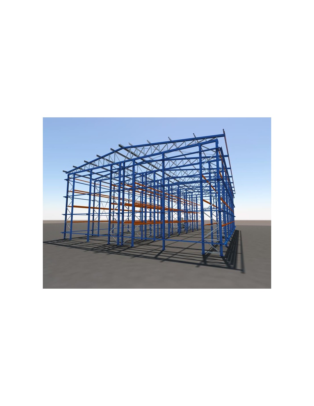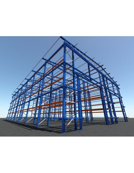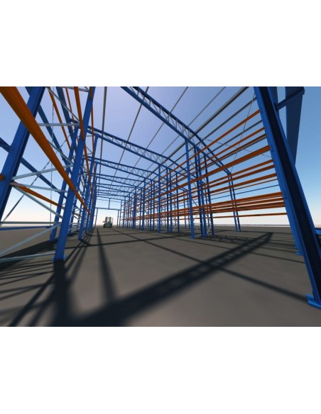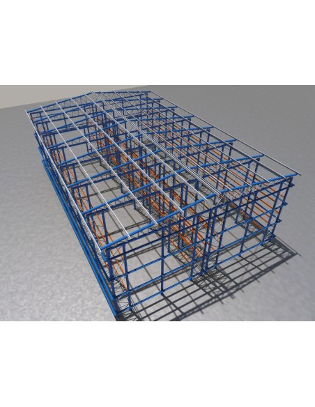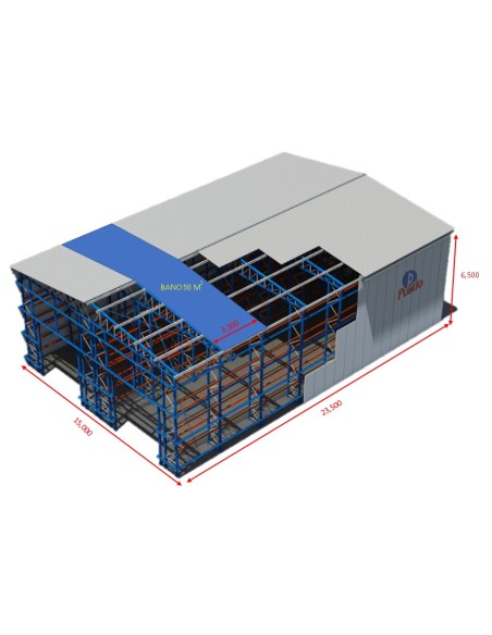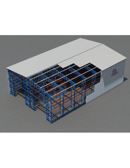 Este kit de bodega autoportante está compuesto sólo de la parte metálica (estanterías, cerchas y correas).